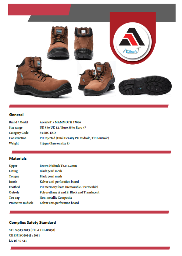 • Mid cut lace up safety boot,