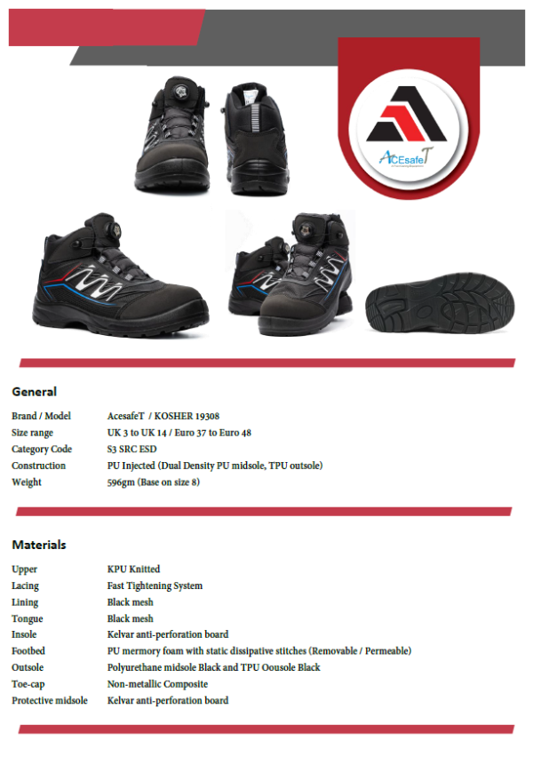 • Mid cut Fast Tightening lacing system Sports safety boots,