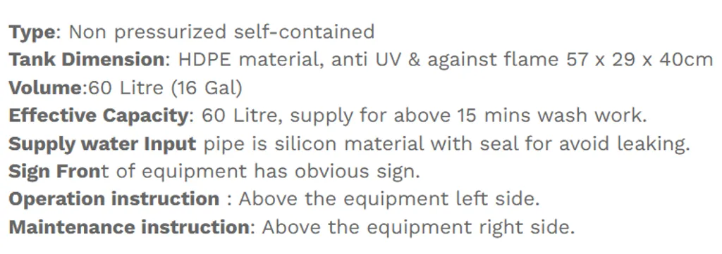 Comb Shower, Comb Shower SS, Deck Mounted, Deck Mounted SS, Mobile, Pedestal, Pedestal SS, Portable, Wall Mounted Station