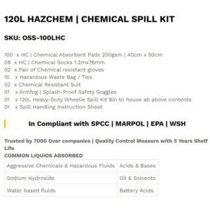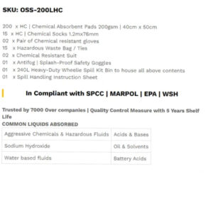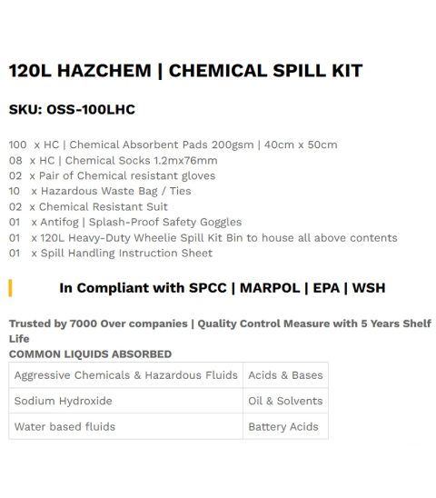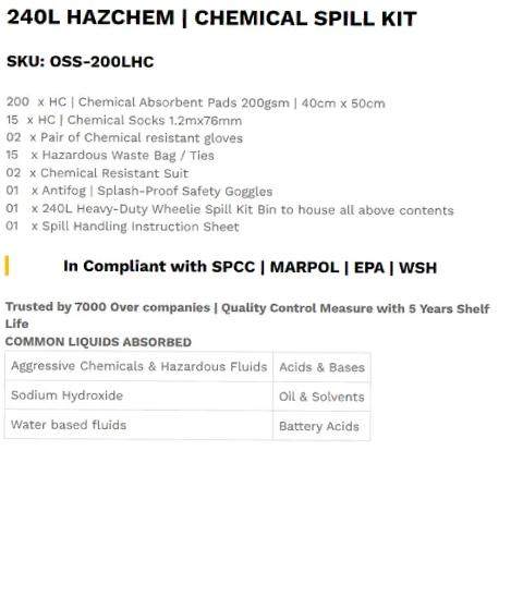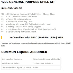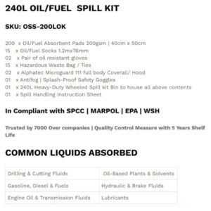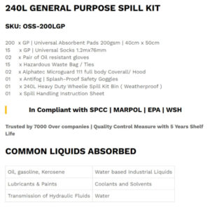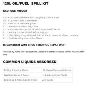 • Kits are tailored for spills such as Oil, Chemical and Universal spills